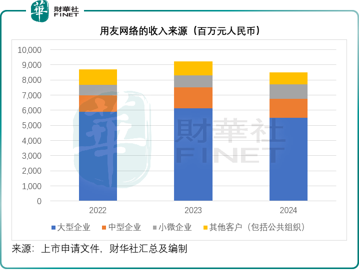 反观用友,2024年大型客户贡献按年下降10.31%,至55.05亿元。